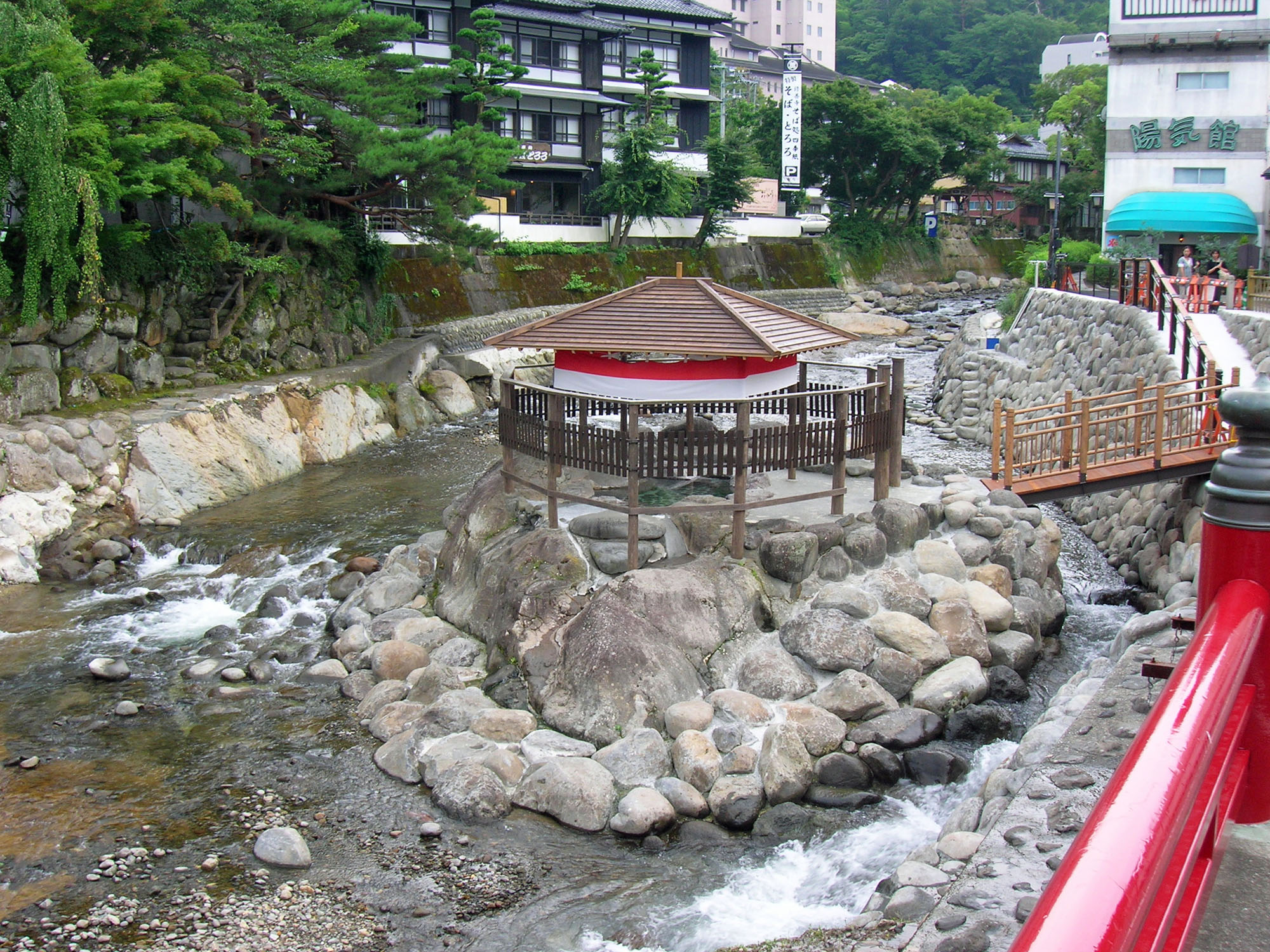 At the very center of town, almost in the river itself, is a tiny open-air foot bath called Dokko no yu. It is said to have been created by Buddhist priest Kukai (774-835) and is supposedly the oldest hot-spring bath on the peninsula. A few minutes walk away is the grave of the second shogun of the Kamakura shogunate, Minamoto no Yoriie, who was murdered while bathing in 1204 at the age of 19 on his uncle's orders. Also nearby are the graves of Yoriie's 13 loyal retainers who rose in rebellion shortly thereafter but were, unfortunately, executed for their troubles.