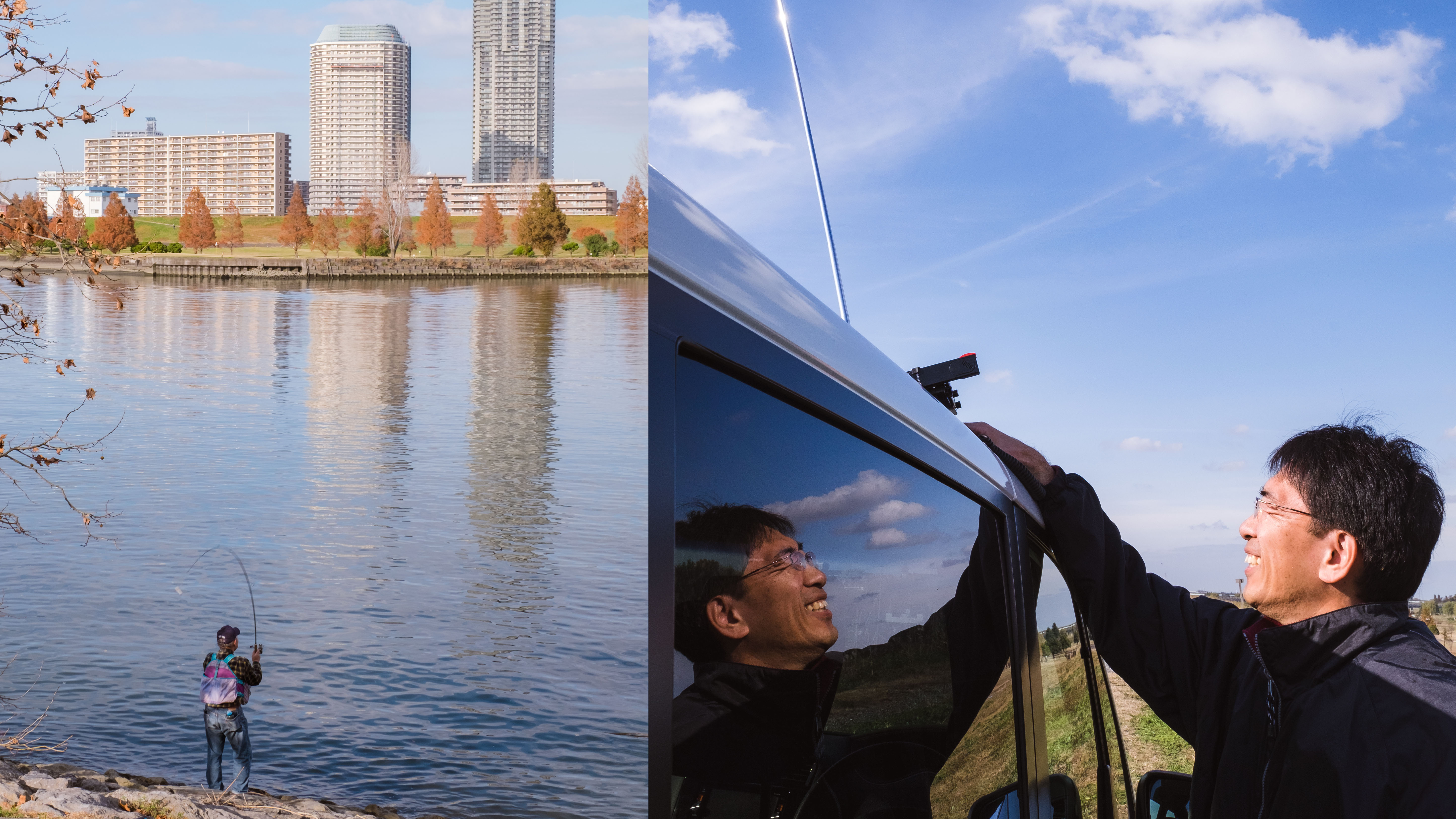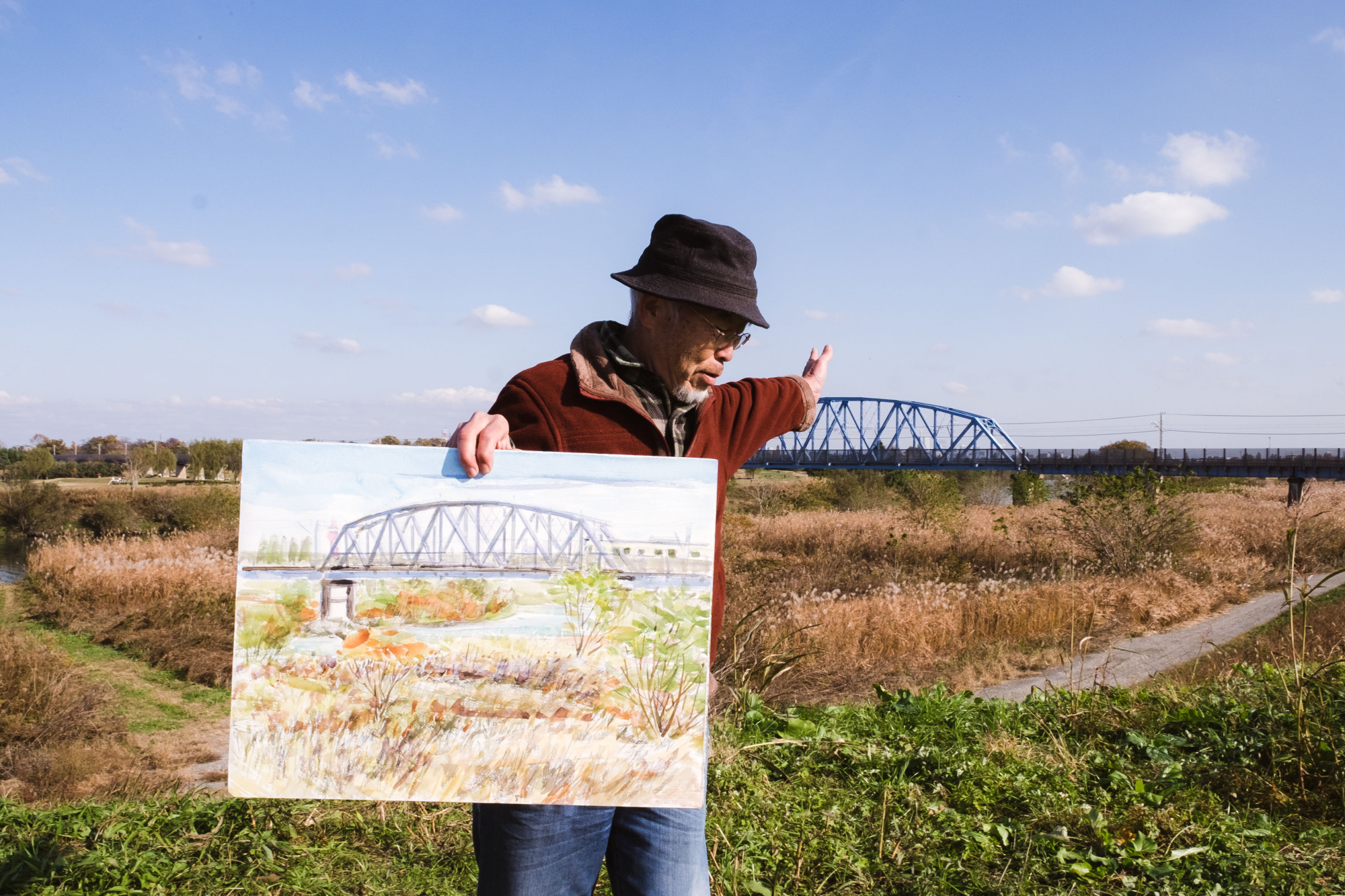 As I approach the Omiya Kenpo Grounds, a massive set of community sports fields, a man waves to me as he climbs the hill from the riverside to his truck. His name is Toshiyuki Hakuno. I ask him about the area.
