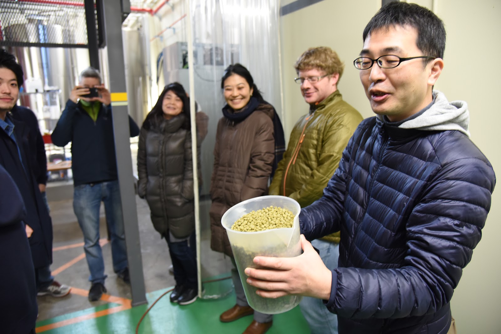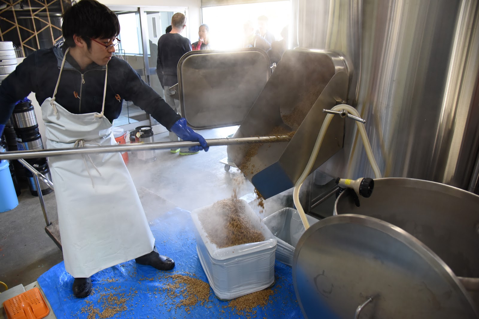 The day's batch is already underway as the collaboration team starts a tour of the Kyoto Brewing facilities in a quiet neighborhood a short cab ride from Kyoto Station.