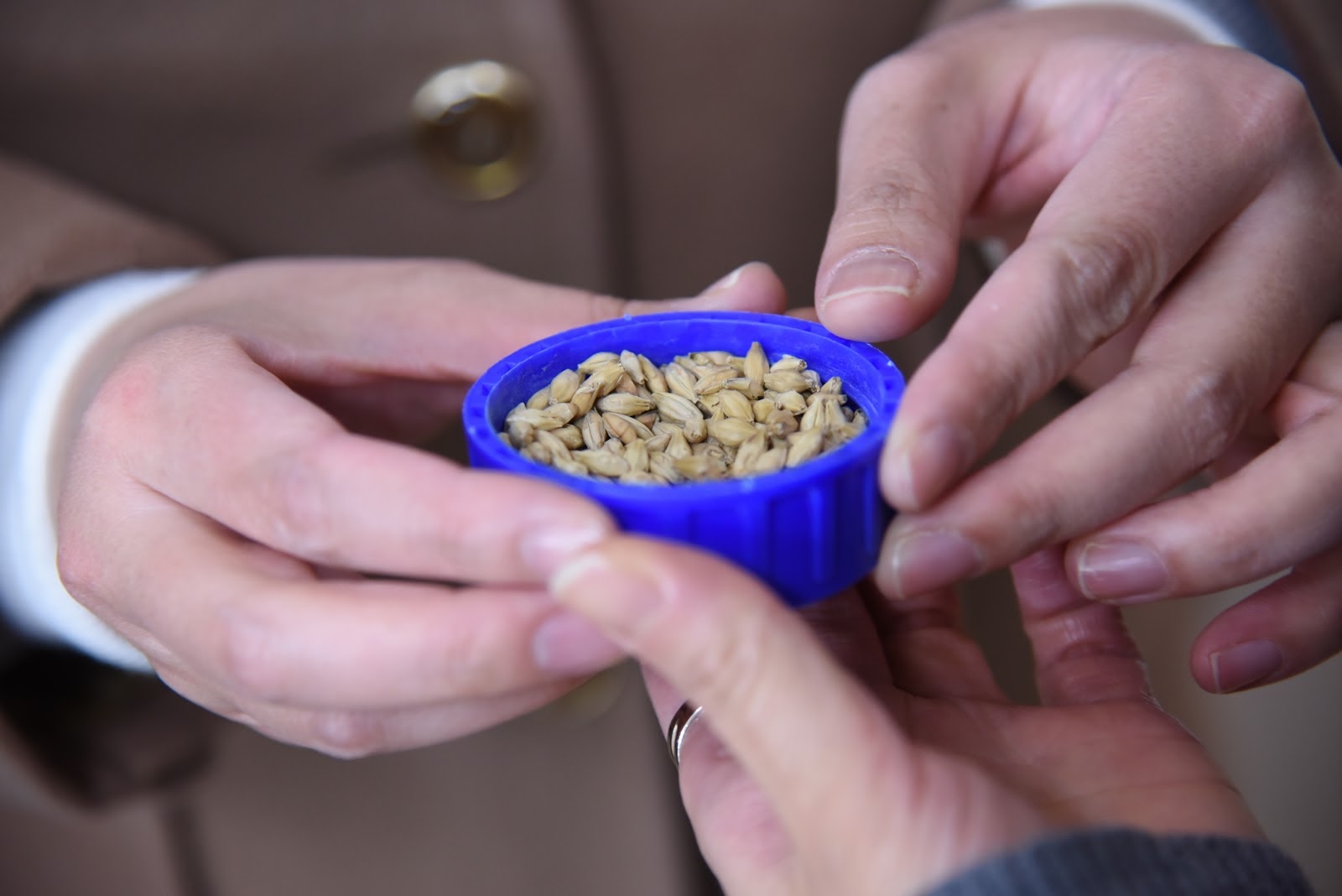 "We've never smelled it before," Falck says of the relatively new German hop, said to carry a fruity, citrus aroma with flavors of tangerine.