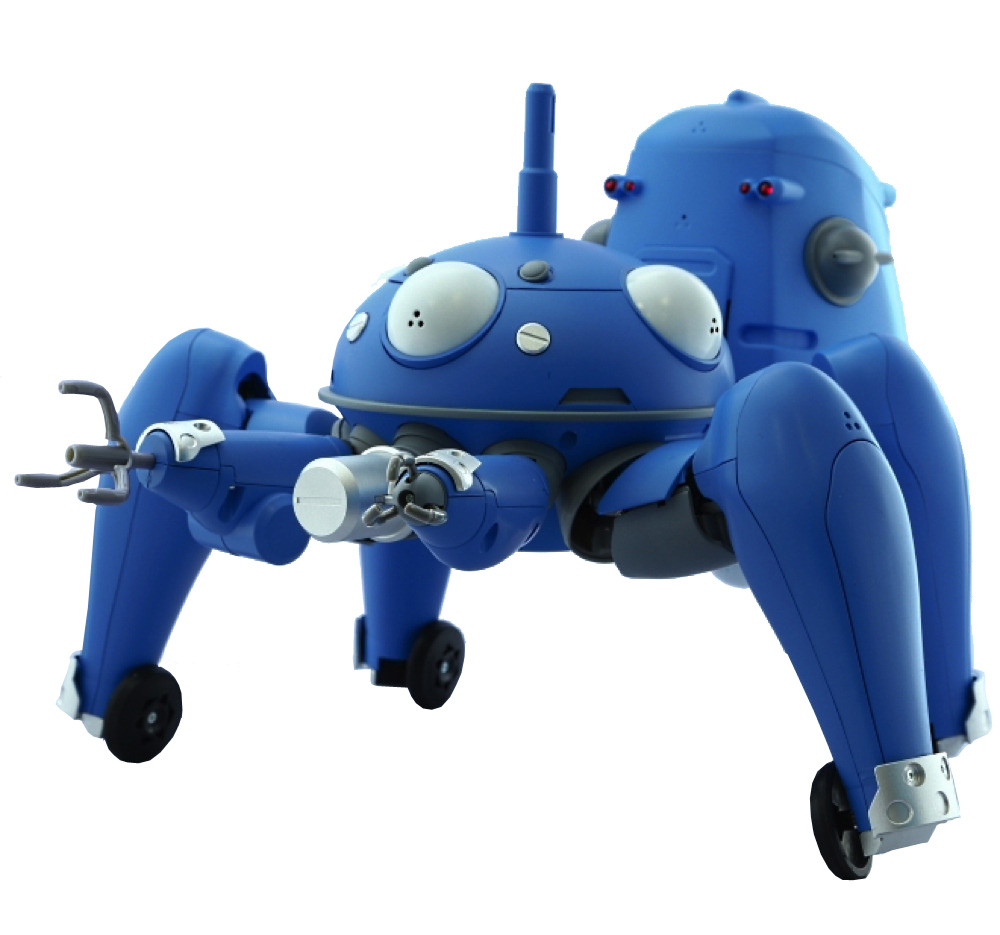 The 1/8 Tachikoma is part of Cerevo's SR2 (from screen to real world) project of using home-electronics technology to make "real" versions of characters in manga, anime, movies and other entertainment. This is the first "Ghost in the Shell" product and like the character it's modeled after, it moves on wheels, has fully functional joints and can express itself by raising its legs. It has a camera and both speech recognition and voice synthesis engines, which allow you to talk to it and get responses, plus it's connected to the internet, so you can synchronize a Google calendar, check the weather and have it search for information.