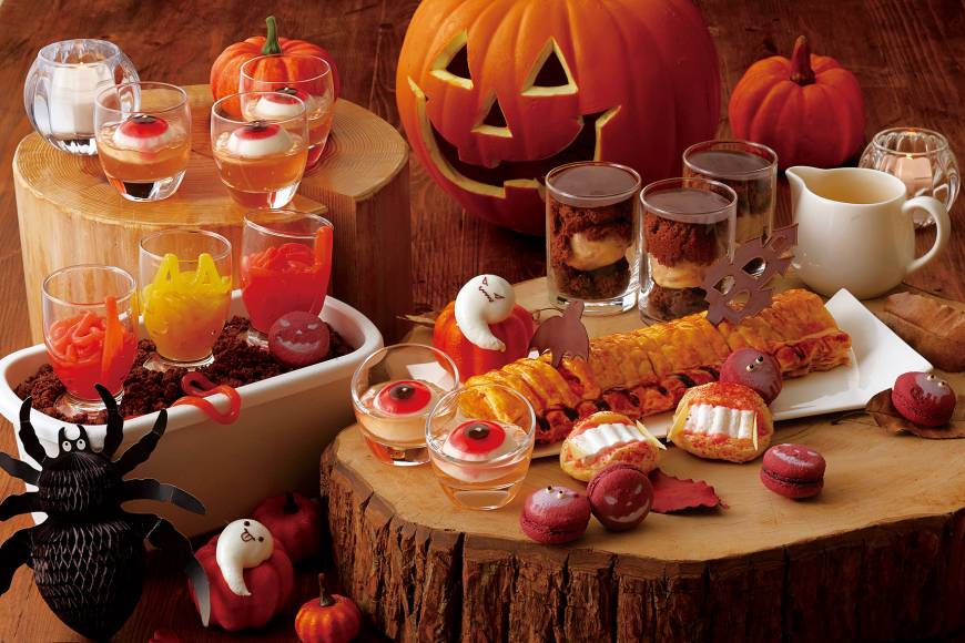 Meanwhile, The Terrace on the fourth floor will serve various Halloween specials on weekends and holidays, including pumpkin gratin in jack-o’-lanterns and black curry in a pumpkin shell. Guests with painted faces or in costume will receive candy (for children under 12), or a Black Cocktail (adults only).