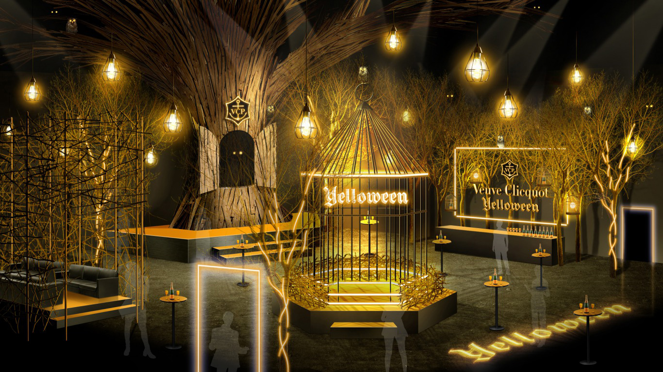 With its distinctive yellow label being the symbol of the Veuve Clicquot brand, yellow lights emanating from lanterns and lamps will illuminate the Halloween party venue.