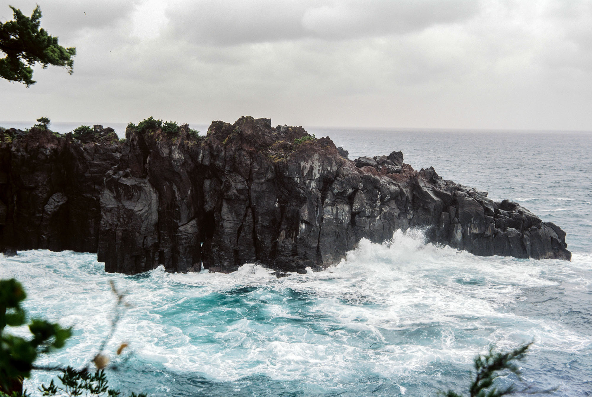 From Jogasaki-Kaigan Station, a peaceful 20-minute walk along a cherry blossom tree-lined street will take you to the entrance of a car park, which opens up to the coast. It is here, camera in tow, that I finally relax, breathing in the salty Pacific air. I listen to the rhythmic sound of the waves as they crash against the jagged cliffs below and search the lush environment for ideal locations to take photographs.