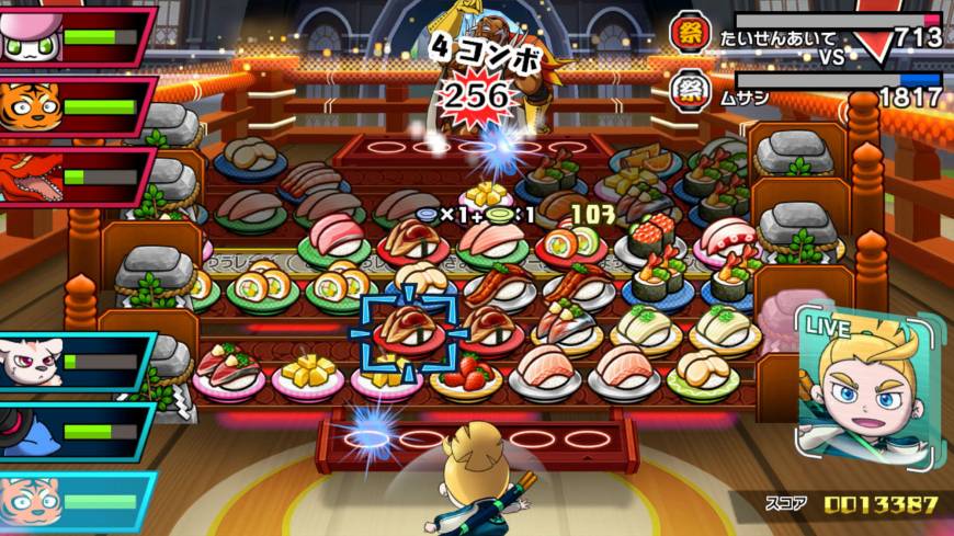 You play as Musashi, who lost his parents in the Sushi Struggles, as he battles Empire foot soldiers in a puzzle-stacking action game. During fights, players match plates of sushi on the conveyer belt and stack the empty plates to be used in attacks against opponents. The game isn't just about the puzzle-action, it also features an entertaining story told through on-screen dialogue and anime cutscenes.