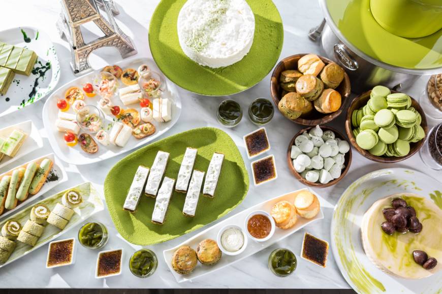 Matcha lovers can indulge in matcha-flavored sweets at the Grand Hyatt Tokyo’s French Kitchen, with its afternoon tea buffet until July 31.