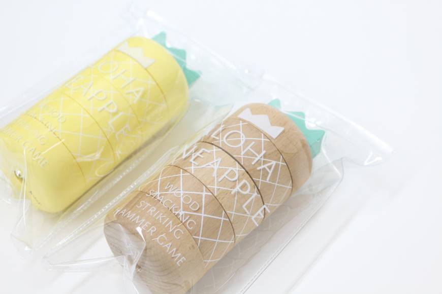 Another modern take on a classic is Kiko+'s new Aloha Pineapple (¥1,944). Kiko+'s contemporary versions of good old-fashioned wooden toys, such as its handheld "video game" (in place of the screen is a water puzzle), have always been cute fun. The Aloha Pineapple, however, is a fruity take on an old Japanese game — Daruma Otoshi, which involves a small hammer and a stack of multicolored blocks topped with one sporting the face of a Dharma doll. The object of Daruma Otoshi is to hammer away blocks from the bottom of the pile without knocking the whole thing over.