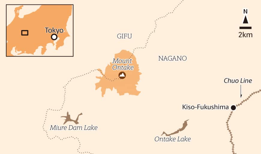 At 3,067 meters tall, Mount Ontake is the 14th-highest mountain in Japan, and the second-highest volcano after Mount Fuji. Its awesome mass straddles the border of Gifu and Nagano prefectures around 100 kilometers northeast of Nagoya, and it has long been regarded as one of the country's most sacred mountains.