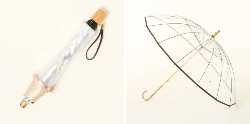 White Rose is now not only the first, but also the only company in Japan still making plastic umbrellas. But it does so with the same pride it did when it started. It only produces around 13,000 umbrellas a year, with prices starting at around ¥5,000. Yes, that's a huge bump up from convenience store fare. But these brollies are made to last. They have soft, durable plastic, one-way slits that allow air out if caught in a gust of wind, extra flexible spokes and, usually, real wood handles. They are so well made, they've caught the attention of trendy outlets, including fashion company Melrose, which recently released two brand collaborations, one of which — its White Rose x Third Magazine — has already sold out. There's still a chance to get hold of Melrose's White Rose x Tiara versions (pictured) at bit.ly/whiterosetiara, but best be quick.
