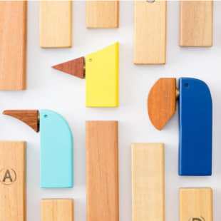 A host of materials are used: leather scraps, leftover tent fabric, old tarpaulins, discarded car airbags and metal, wood, even chopstick offcuts. Sometimes, new products retain the original shapes of the scrap materials, such as Takaaki Kamei's Tone of Life clock made of the round offcut fiberboard pieces from speakers. Other times the material takes on a new form, such as Tupera Tupera's adorable air-bag pig and bear pouches. Most of the time, the items allude to its material origins, such as B6 Studio's Bird Call sound toy, which is made from unwanted wooden xylophone parts from instrument workshops.