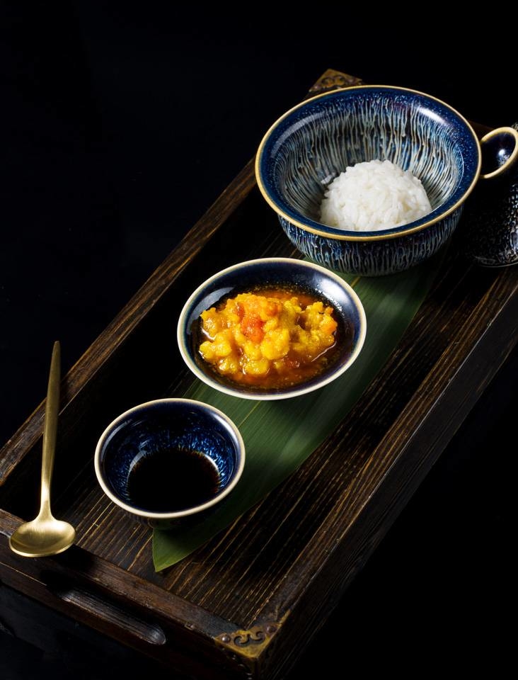 A classic recipe from the south Suzhou area pairs a golden-orange mixture of roe, milt, tomalley and crabmeat with a small serving of long-grain rice. A cruet of black vinegar is served on the side, to modulate the intensity of flavors.