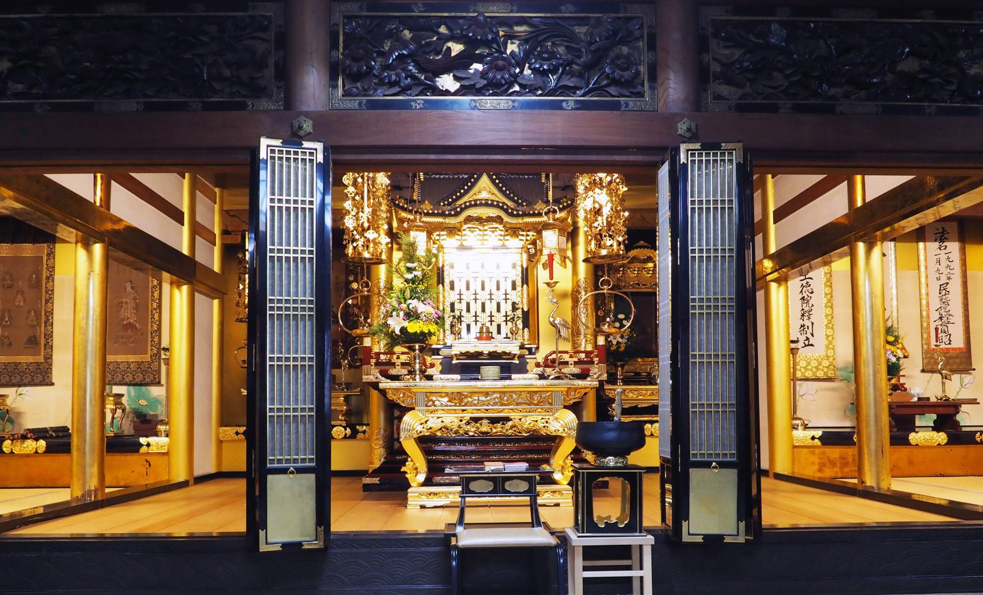 Farmer’s Restaurant Ookado allows customers to enjoy local shōjin ryōri (Buddhist vegetarian cuisine) right in front of an azumadachi’s butsudan altar. Toyama butsudan are renowned for being large and ornate, making Ookado’s a striking centerpiece.