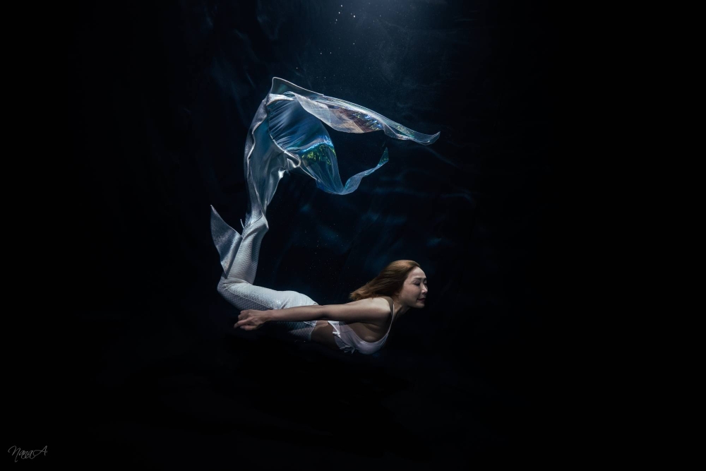Mermaid swimming is adapted from freediving, where swimmers hold their breath underwater. Using a monofin, participants learn from professional divers how to move, like a dolphin, by kicking from the waist.