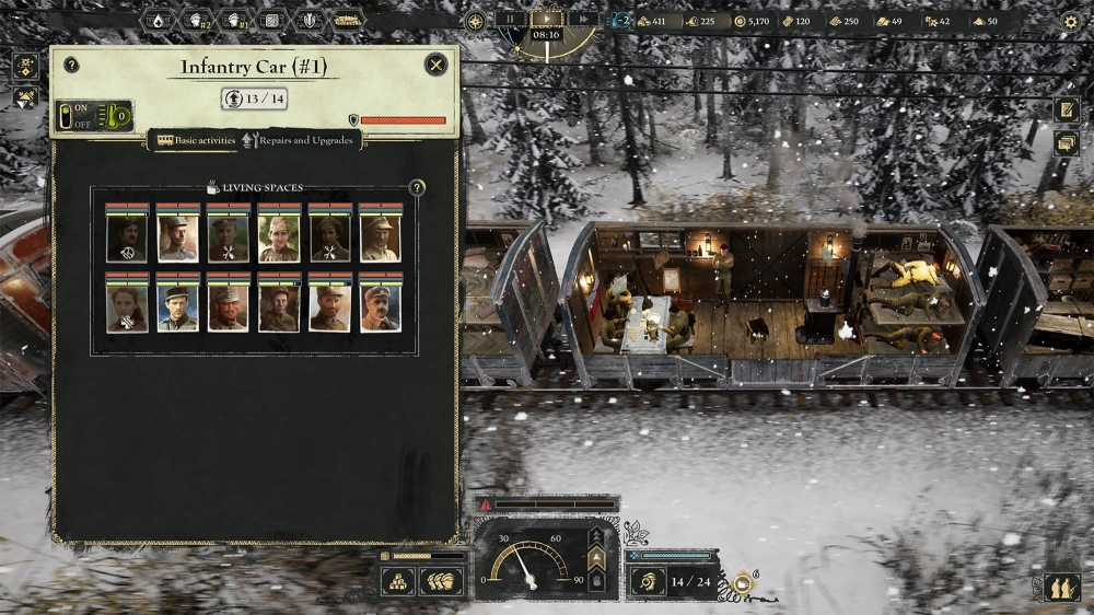 These decisions are designed to be uncomfortable. In one scenario, a Red Army soldier hails the train and pleads for you to take his family members to a doctor. It might be a trap. You can slaughter them, pleasing soldiers with the vengeful trait, or help them at the cost of food.