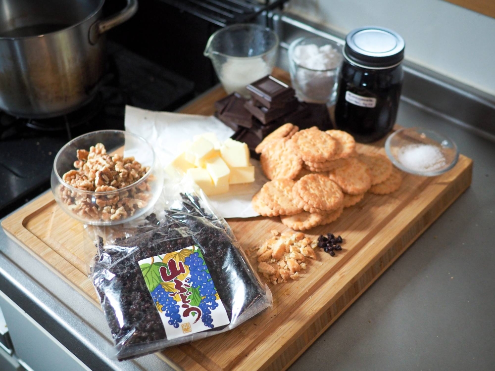 The chocolate salami dish is a no-bake truffle medley of chocolate ganache mixed with biscuits, nuts and dried fruit, then rolled and covered in powdered sugar to resemble charcuterie. Emanating from Italy, its popularity is pan-European with names and ingredients varying throughout.