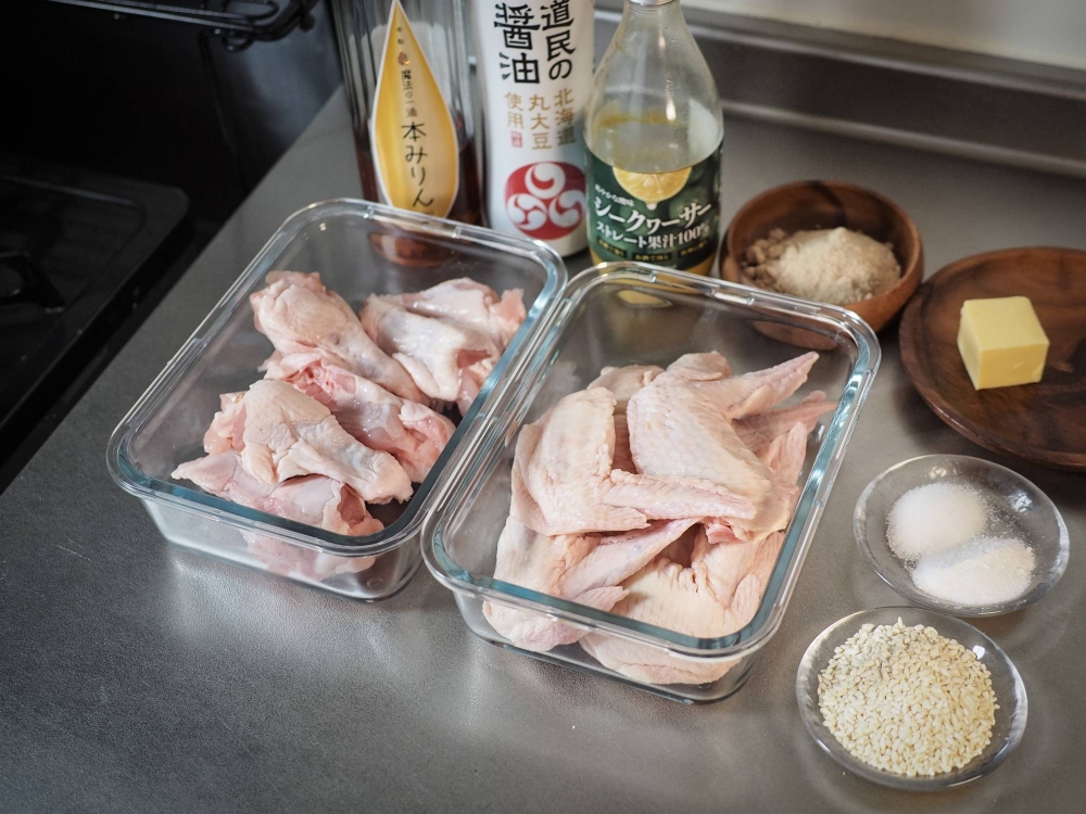 While this recipe would be perfect for an air-fryer or fried the good old-fashioned way, these wings are actually baked. The addition of baking powder makes the skin more alkaline so they brown perfectly in a conventional oven without added oil. For our sauce, a traditional soy and shikuwasa citrus ponzu doesn’t need extra sugar with the addition of mirin. We add a little to make it a glaze along with butter.