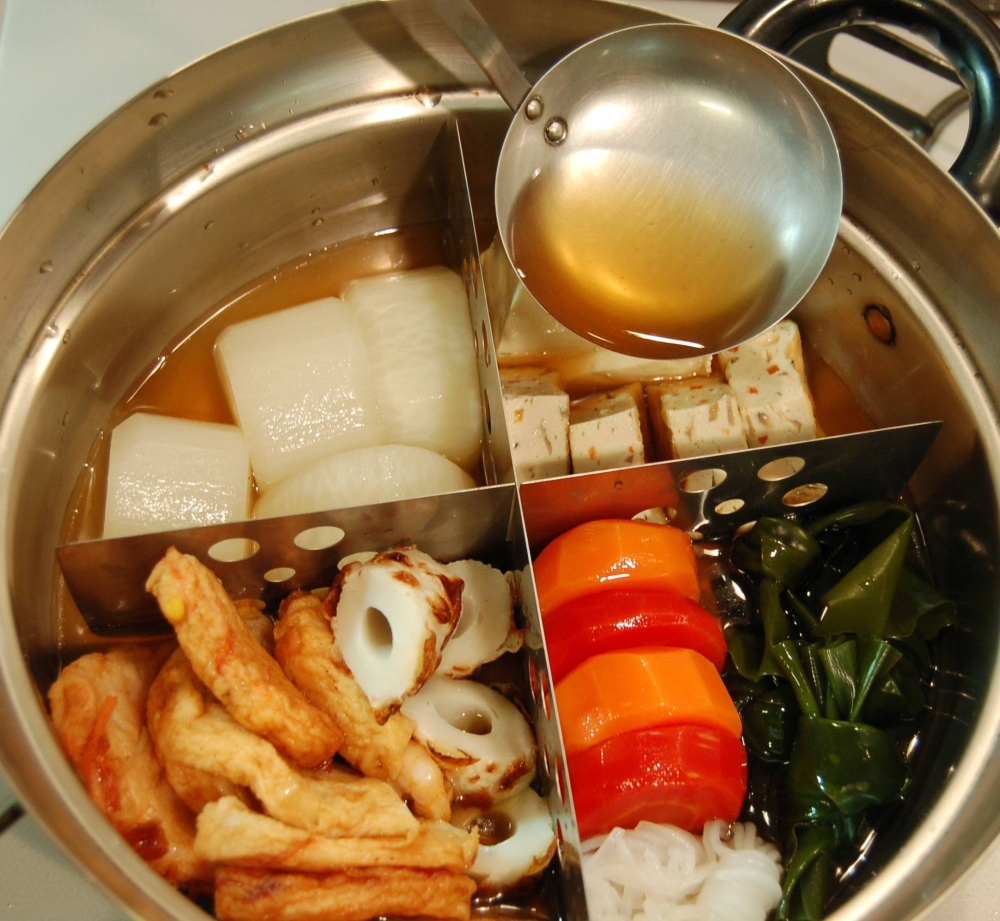 Although it takes about 45 minutes to cook your daikon until it’s properly tender and ready to soak up oden’s telltale flavors, tender-prepping can be done a full day (or two) in advance of cooking and serving. If you prefer to cook both at the same time, you can make your dashi stock on a separate stovetop burner and assemble the seasoned broth. Everything can be set aside, refrigerated, for use the following day.