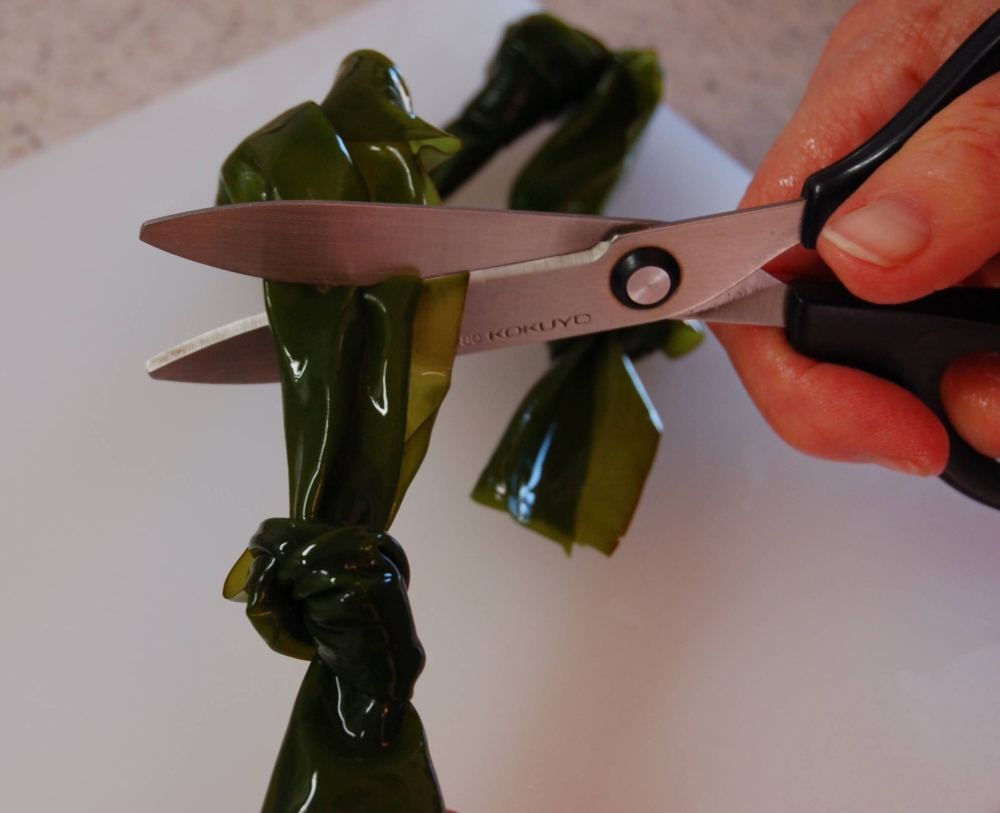 - Nama kombu (fresh edible kelp), rinsed, cut and tied into knots (a 45-centimeter length of kombu will make four knots)