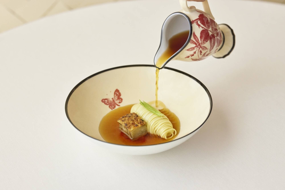 “The Parmigiana That Wants to Become a Ramen” is another Gucci Osteria signature inspired by Bottura's masterpiece: “The Potato That Wants to Become a Truffle.” Iacoviello demonstrates how Italy’s love for spaghetti and Japan’s adoration of ramen finds harmony on a plate. This creation impressed Michelin inspectors so much they mentioned it in their 2023 guide, in which Gucci Osteria received one star.