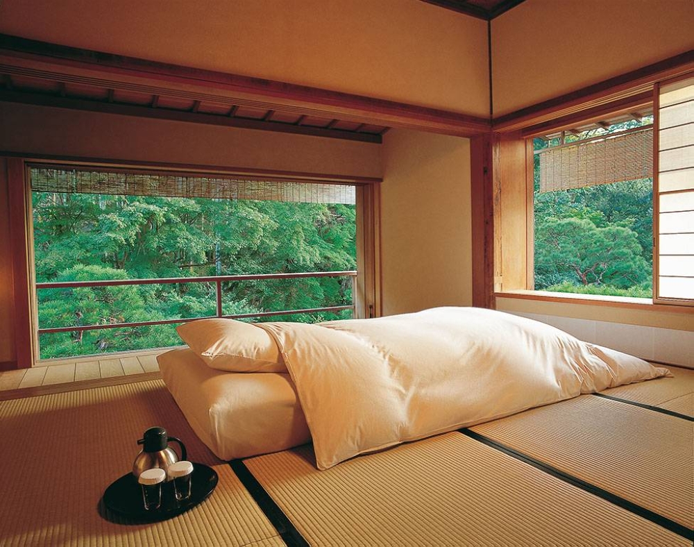 The contemporary touches complement Asaba's traditional charms. An elegantly attired attendant, dressed in a kimono and wearing vermillion lipstick, leads me through the corridors. We pass miniature rock gardens and the outdoor hot spring bath before arriving at my suite: three tatami mat rooms with a view of the moss-covered garden. The kaiseki (Japanese haute cuisine) dinner, served at a Western-style table in the suite’s central chamber, is a seasonal feast of 10 courses: hairy crab topped with sea urchin, softshell turtle soup with winter melon, grilled ayu (sweetfish) and delectable, deep-fried abalone with charred Manganji green peppers. After dinner, a male attendant unfurls a plush futon on the floor, and soon I fall asleep to the murmurs of the stream outside.