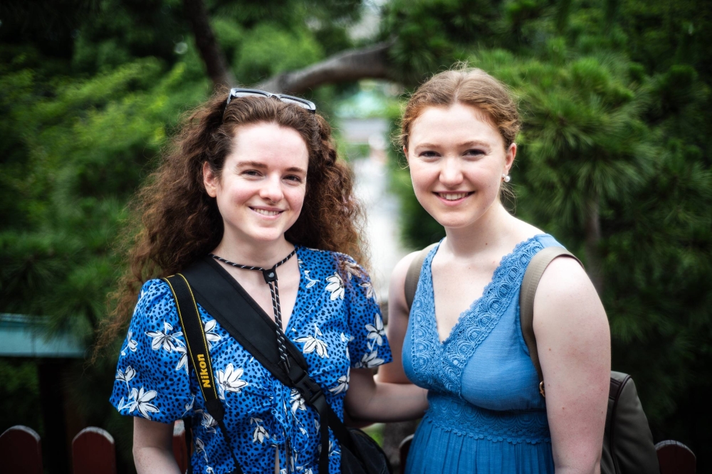 As we wander into Ueno Park and enter the premises of the Kiyomizu Kannon-do, a temple founded in 1631, we encounter two women taking photographs on the structure’s wooden balcony. Grace O’Mara and Bronagh Ronaghan are both 24 and work for the same U.K.-based management consultancy.