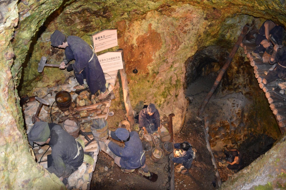 Sado is famous as the site of Japan’s most productive gold mines. During the Edo Period (1603-1868), Sado and its mines were under the direct control of the Tokugawa shogunate, becoming a significant source of its wealth and producing over 40 tons of gold, all scraped out of the mountains by hand. Before the Tokugawas banned most contact with Westerners in the mid-17th century, gold mining technology was something they actively sought from the Spanish, who by that time already had extensive experience in extracting it from their New World colonies.