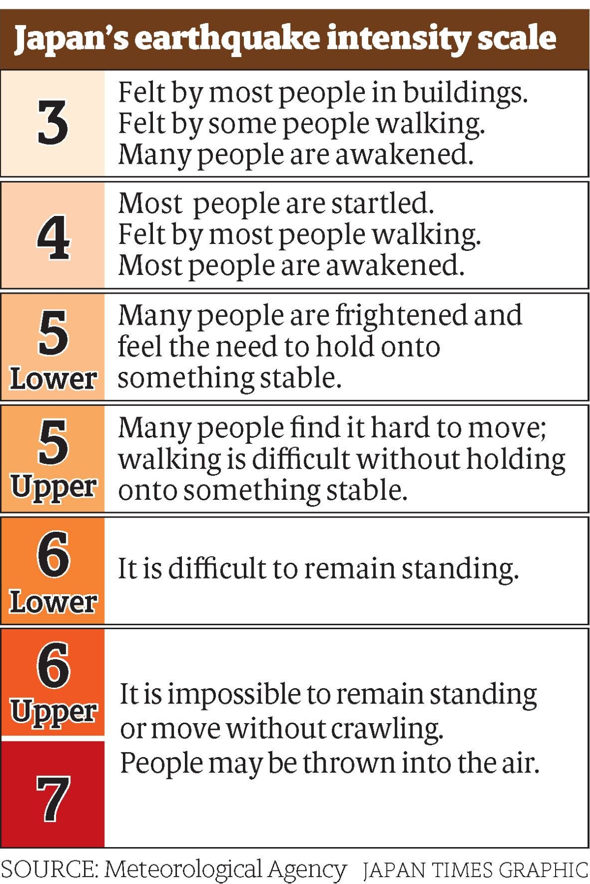 It’s also important to note that Japan has its own 震度 (shindo) system of measuring quakes, as opposed to using the Richter scale that expresses strength in マグニチュード (magunichūdo, magnitude). So while the Great East Japan Earthquake of 2011 was a magnitude 9.1, in Japan it was expressed as a 震度7.
