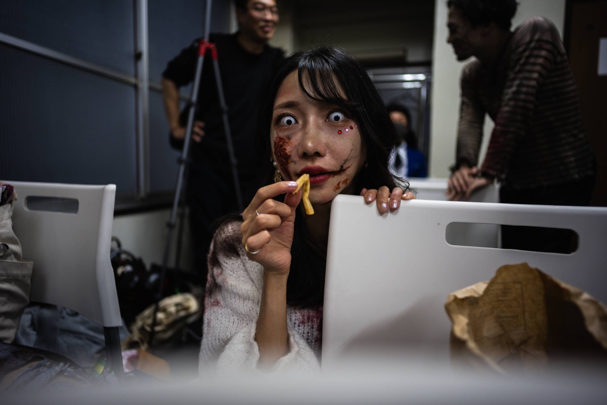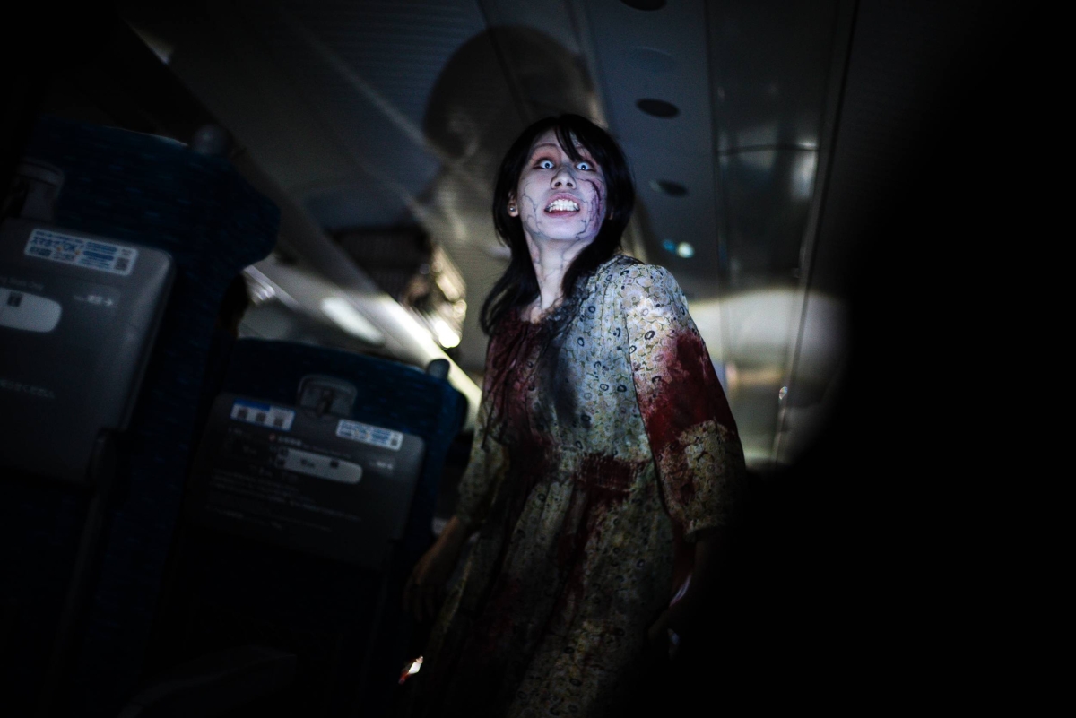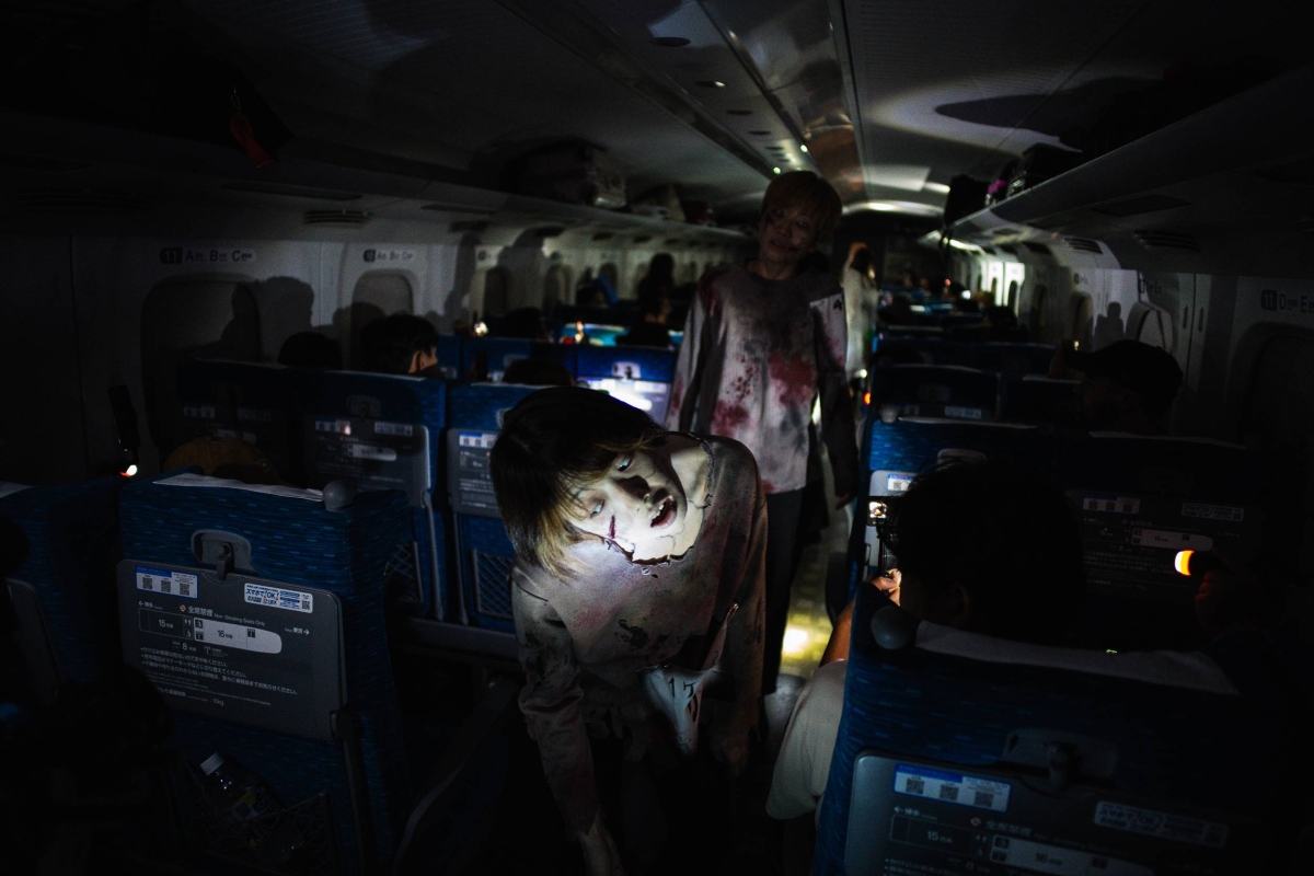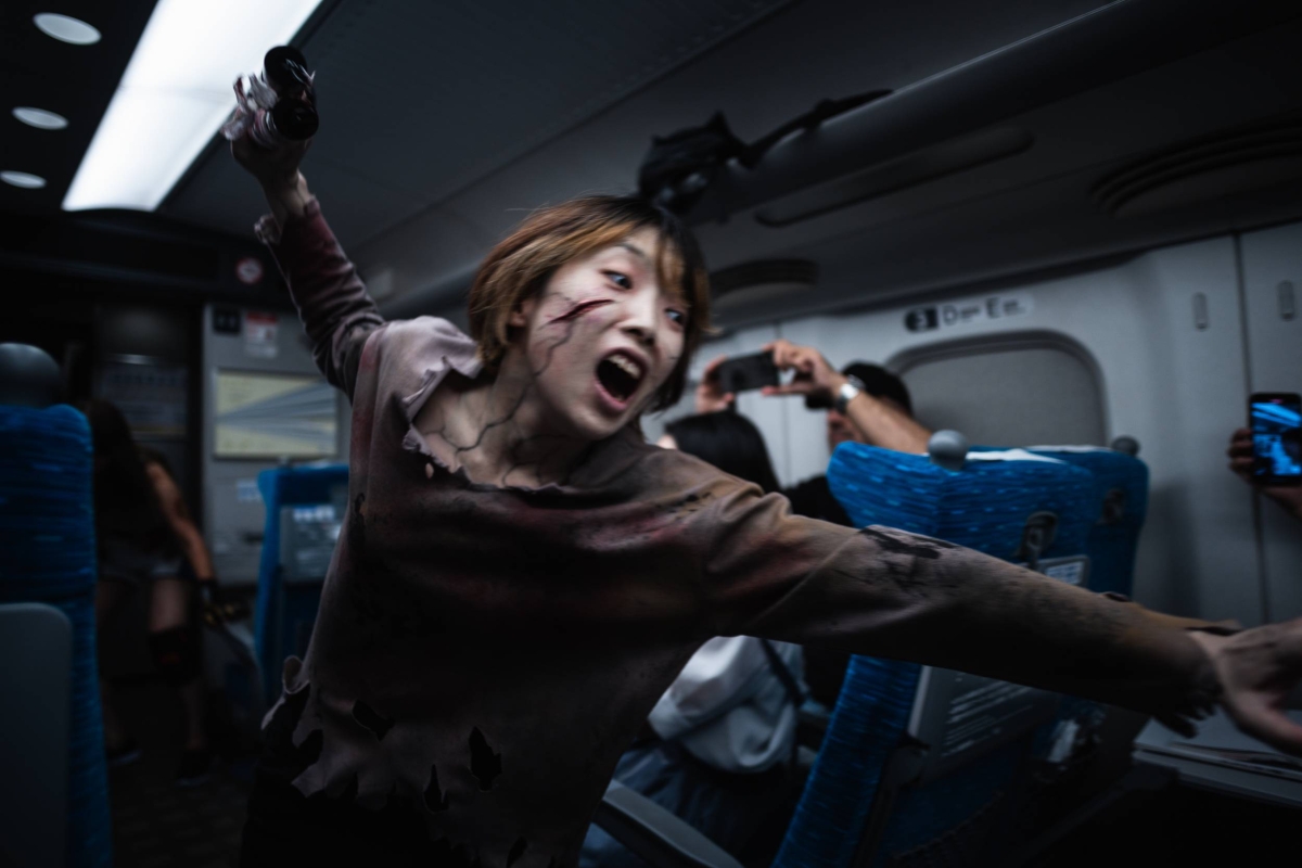 On Oct. 19, there was an official takeover of one car on a regularly scheduled train from Tokyo to Shin-Osaka Station, put on by event planning organization Kowagara Setai and which about 40 horror fans paid up to ¥50,000 to attend. You may have seen “Train to Busan,” the hit South Korean movie the event draws its inspiration from, but watching it unfold before you is another thing entirely. That it’s happening on the world’s safest form of transport, in a country renowned for its order and cleanliness — during a month the shinkansen celebrated its 60th anniversary, no less — compounds its unsettling outlandishness.