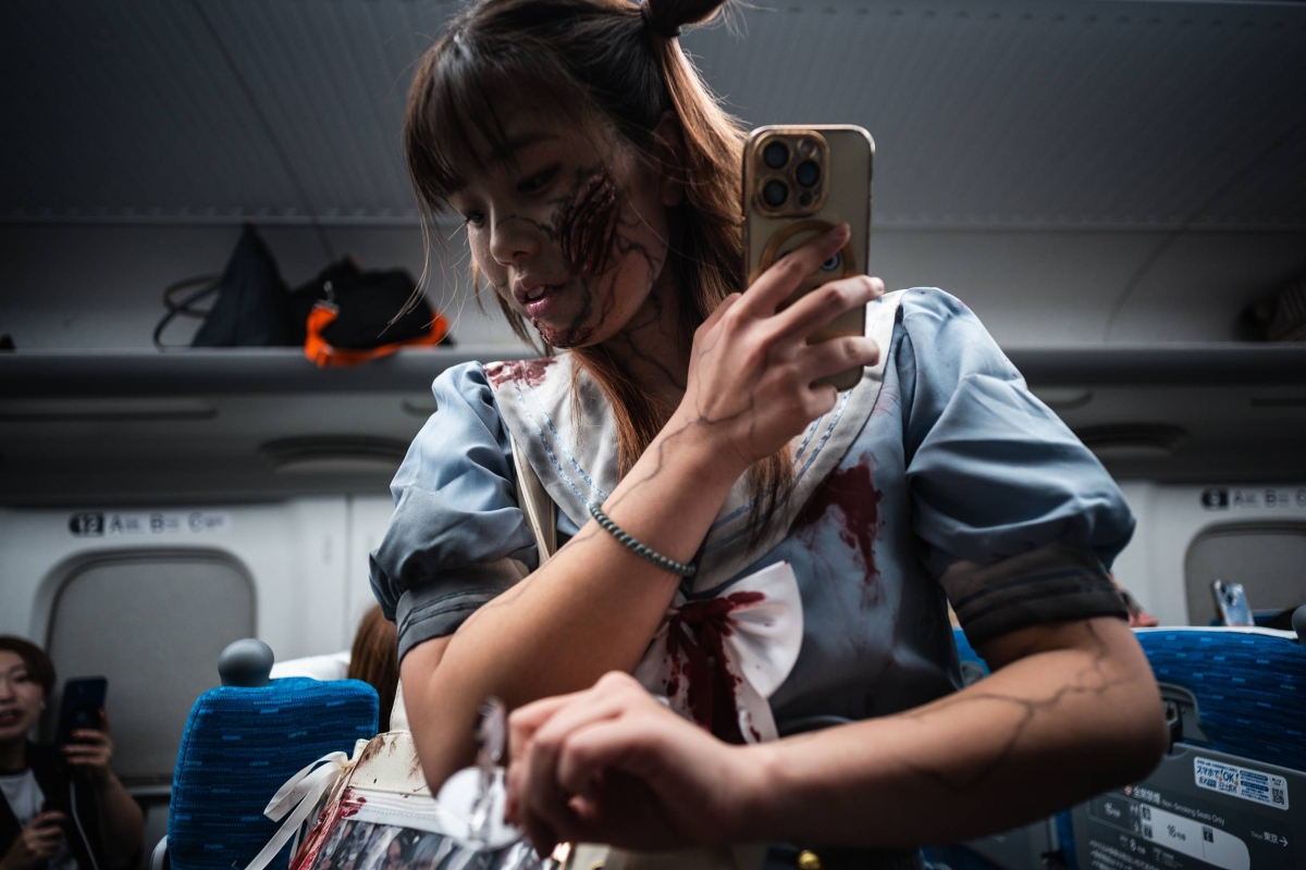 Along the Tokaido Shinkansen Line, passengers are tricked and treated to a variety of different zombie-themed performances ranging from your typical aggressive zombie fare to a dance troupe in maid uniforms performing a rendition of Michael Jackson’s “Thriller,” which was a highlight for Shivansh Saini, 25, who said it was “creepy, but also funny at the same time.”