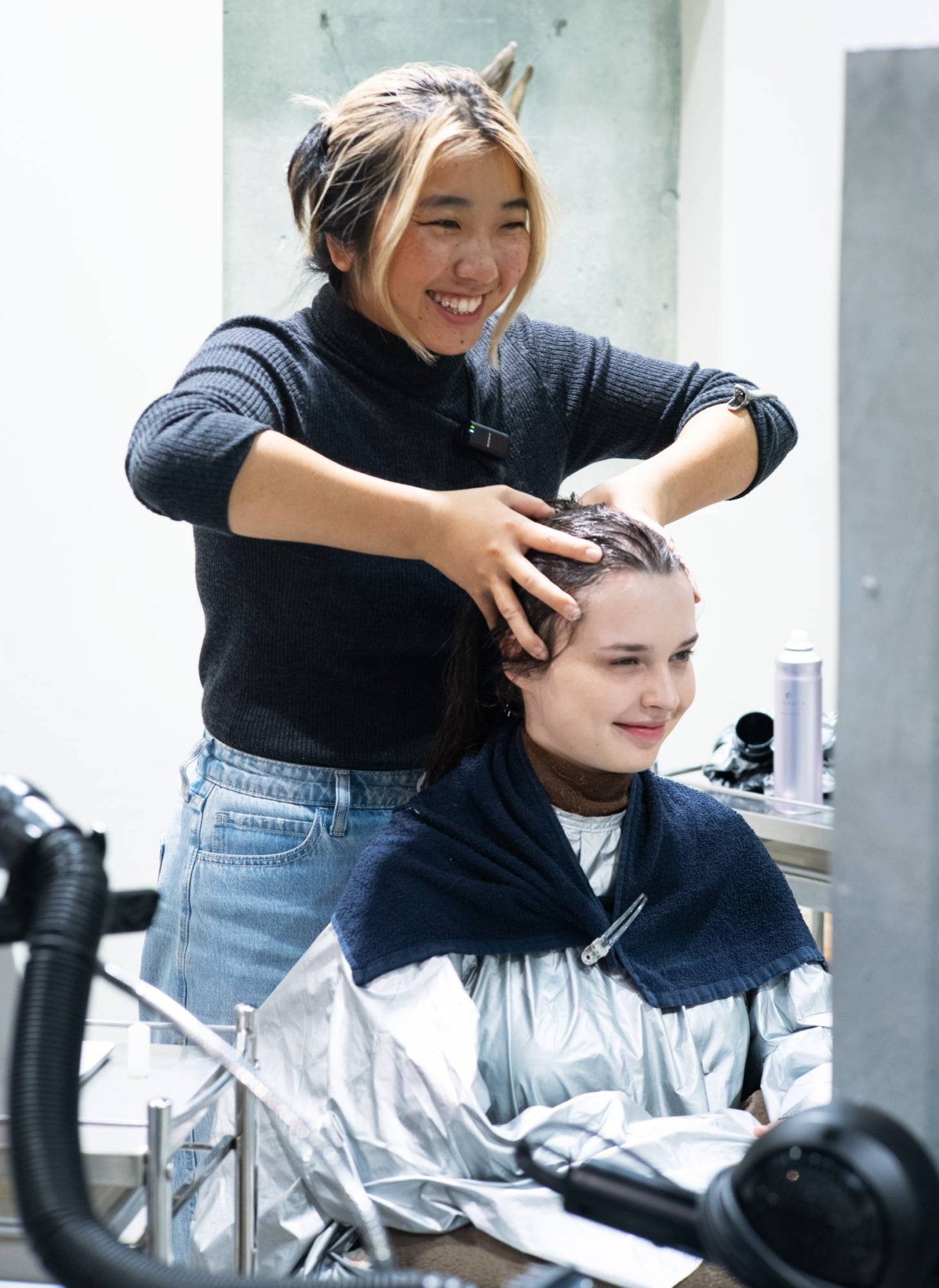 “During the model sessions, I am really conscious about teaching technique,” Kuboki says. “Most of my students have years more experience in the industry than I do, but I understand the perspective and beauty standard of the West, which perhaps they do not. For example, I teach them how to approach curly hair or how to place bleach and dye on different hair types.”