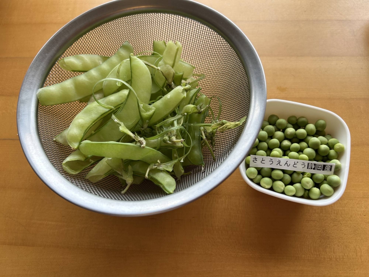 At my local supermarket, I found three varieties of endō mame (peas in their pods): gurīn pīzu (green peas), satō endō (sweet peas) and sunappu endō (snap peas).