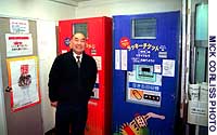 Yasui demonstrates the procedure, opening the slot on one of two vending machine-size recyclers and putting a plastic bottle inside. Slamming the door shut, a video-gamelike display jumps into action, with a pitcher winding up and letting it rip.