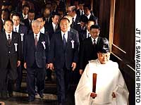 The lawmakers, members of a suprapartisan group in the Diet promoting visits to the Tokyo Shinto shrine, visited on the occasion of a spring peace festival, and 94 other Diet members sent representatives.