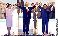 The leaders of the two other coalition partners attended the event as guests -- Koizumi, who heads the LDP, and Takeshi Noda of the New Conservative Party.