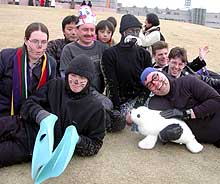 In seal costumes or with whiskers painted on their faces, about 20 protesters said residence ID cards should be granted to long-term foreign residents so they can enjoy the same rights as Japanese when, for example, they apply for drivers' licenses or housing loans.