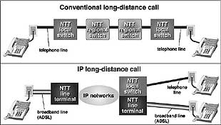In fact, beginning this summer, when NTT's two regional carriers finish revamping their systems, IP phone users will be able to receive calls from conventional phone users through IP networks.
