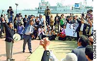 In Monday's protest, Toru Hasuike, 48, whose 45-year-old brother, Kaoru, was among those abducted to the North but who was allowed to return to Japan last October, said, "The Man Gyong Bong didn't come after our voices of outrage reached their shores."