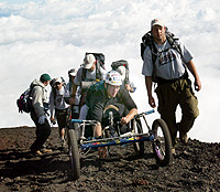 "In Shirouma-no-Kai, 40 helpers assist about 10 disabled to climb mountains by carrying them on 'human backpacks," ' Reilly said. "But they are now very much interested in my device, which allows them to use their own strength. We are talking about cooperating and sharing our knowledge."