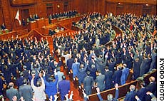 Earlier the day, the House of Councilors enacted a bill to extend by two years a law that allows the SDF to continue providing logistic support to the U.S.-led forces combating terrorism. The DPJ, JCP and SDP voted against it.