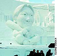 At Odori Park in downtown Sapporo, where the main part of the festival is taking place, five large snow statues, including one of New York Yankees slugger Hideki Matsui, and about 200 smaller ice sculptures are on show.