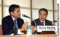 Zakaria was speaking on the theme, "Globalization and the future of democracy -- How will the United States, Japan and China cope with the new world order?" Yoshinori Imai, executive editor and commentator of NHK, served as moderator of the event.