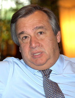 The ex-Portuguese prime minister came to talk to the Foreign Ministry about Japan's refugee assistance overseas, nongovernmental organizations and to boost ties with the private sector, and to discuss with the Justice Ministry the treatment of asylum-seekers.