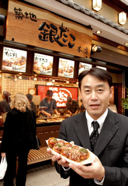 "I worried whether Americans could eat octopus, but 'takoyaki' sales at a special event proved they love it," said Sase, founder and president of HotLand Corp., which operates about 300 Tsukiji Gindaco takoyaki outlets across Japan and 11 in other parts of Asia. "I was relieved and I felt I could make it."