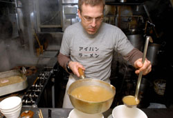 That a guy from New York could attract such a big Japanese crowd seems to have taken Orkin himself by surprise. As he put it, in English this time, "It's very humbling and gratifying to have all these people . . . who eat great ramen all the time tell me my ramen is as good as any of the ramen they have been eating."