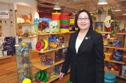 Believing that children should have good educational toys to play with, Nakanishi's company imports toys from Europe and the United States that can be used safely indoors.