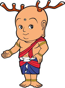 The character, developed for the anniversary event in 2010, is a boy resembling a young Buddha in swaddling clothes, with deer antlers sticking out of his head.