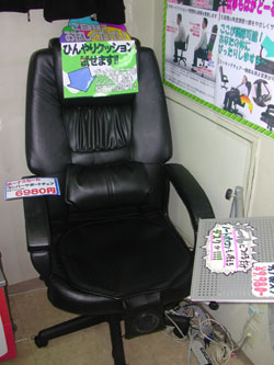 The company began selling a USB Cooler Cushion at its shop in Akihabara, Tokyo, in June last year. The device is powered from a personal computer's USB port and comes equipped with a small fan and ventilation holes. The item sold "pretty well" last summer, Yamamitsu, 42, said, adding he expects even better sales this summer.