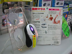 Apart from goods that fight perspiration, the exercise-shy can use a mouse that comes connected to electrical muscle stimulation patches to put on the stomach or arms to shape up their bodies.