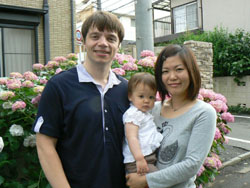 It's been about nine years since their first date, to see the movie "The Perfect Storm." After living in Edinburgh for four years, they came back to Japan in 2007 and now live in Tokyo with their 1-year-old daughter, Emma.