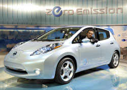 The Leaf is powered by lithium-ion batteries and has a range of 160 km on a full charge. It will go on sale in Japan, Europe and the U.S. next year, according to Nissan. The carmaker expects at least 20,000 U.S. orders for the model by the time deliveries begin by the end of 2010.